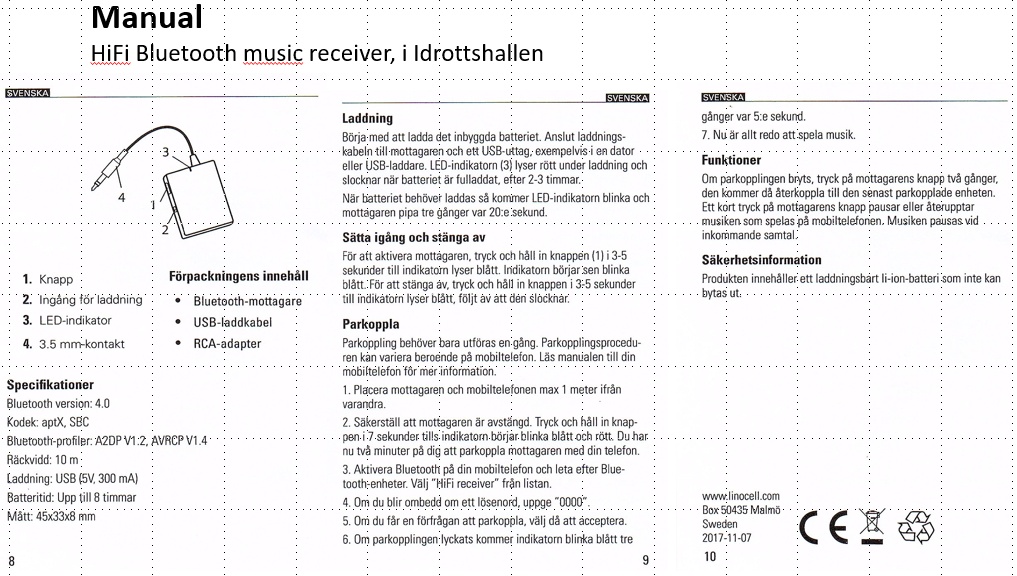 nu har kommunen inhandlat en Bluetooth enhet till ljudanläggningen i hallen, den ligger i kassaskåpet tillsammans med kontroll panelen och den trådlösa mikrofonen.